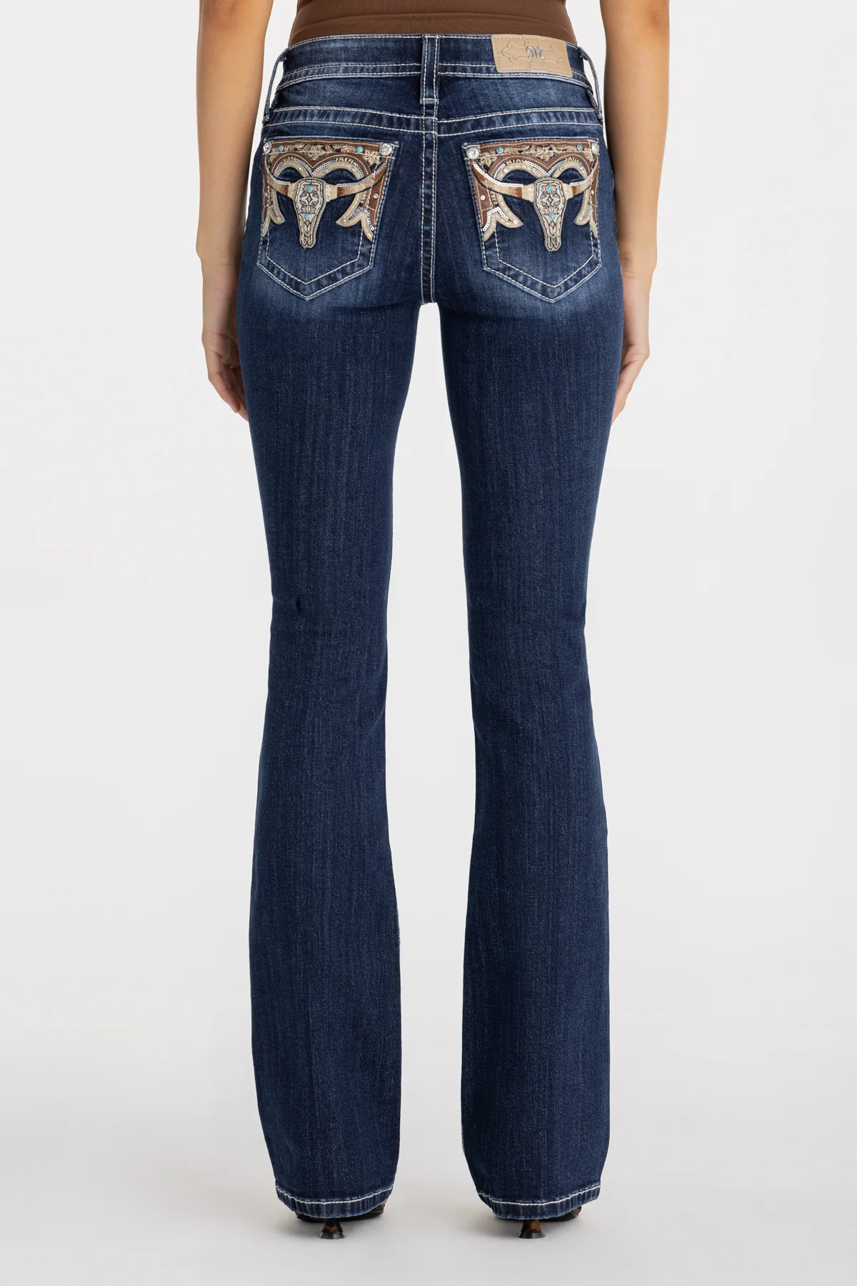 Calça Feminina Jeans Miss Me Clover Longhorn