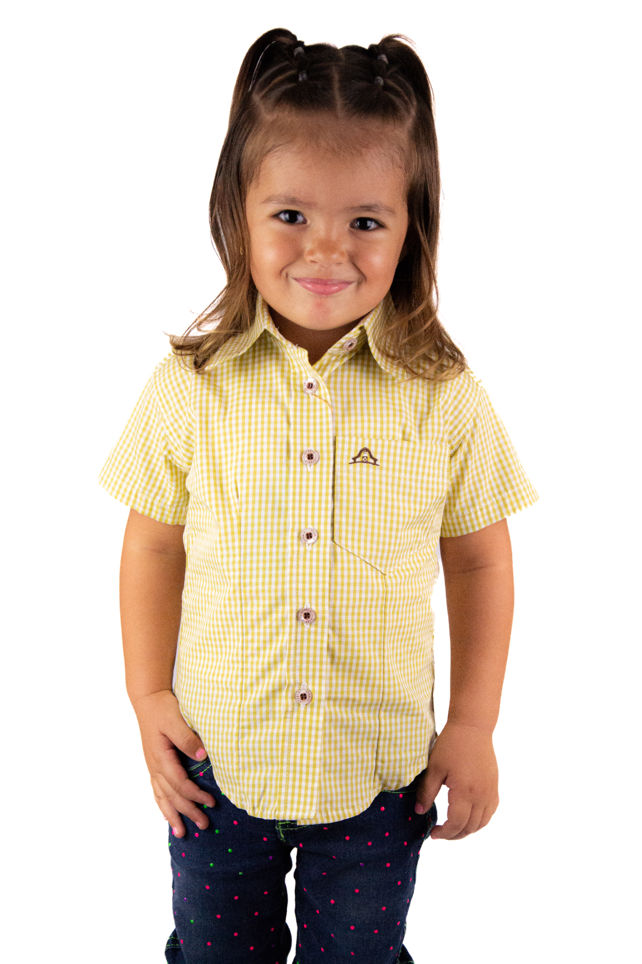 Camisa Infantil Feminina Manga Curta Xadrez Amarela
