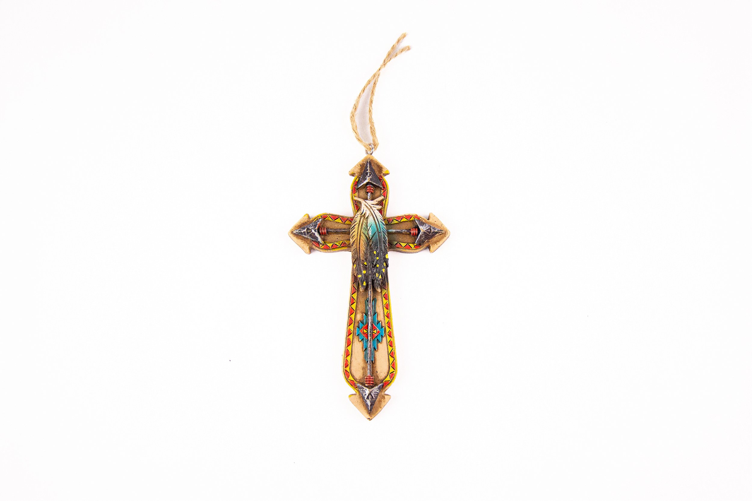 Cruz decorativa para retrovisor com inspiração Apache, trazendo grafismos étnicos e combinados com detalhes em tom turquesa. A peça carrega forte simbolismo de proteção, espiritualidade e conexão com a cultura indígena, além de um visual marcante no estilo Western. Ideal para retrovisores de carros e caminhonetes, também pode ser usada como elemento decorativo em ambientes rústicos e temáticos.