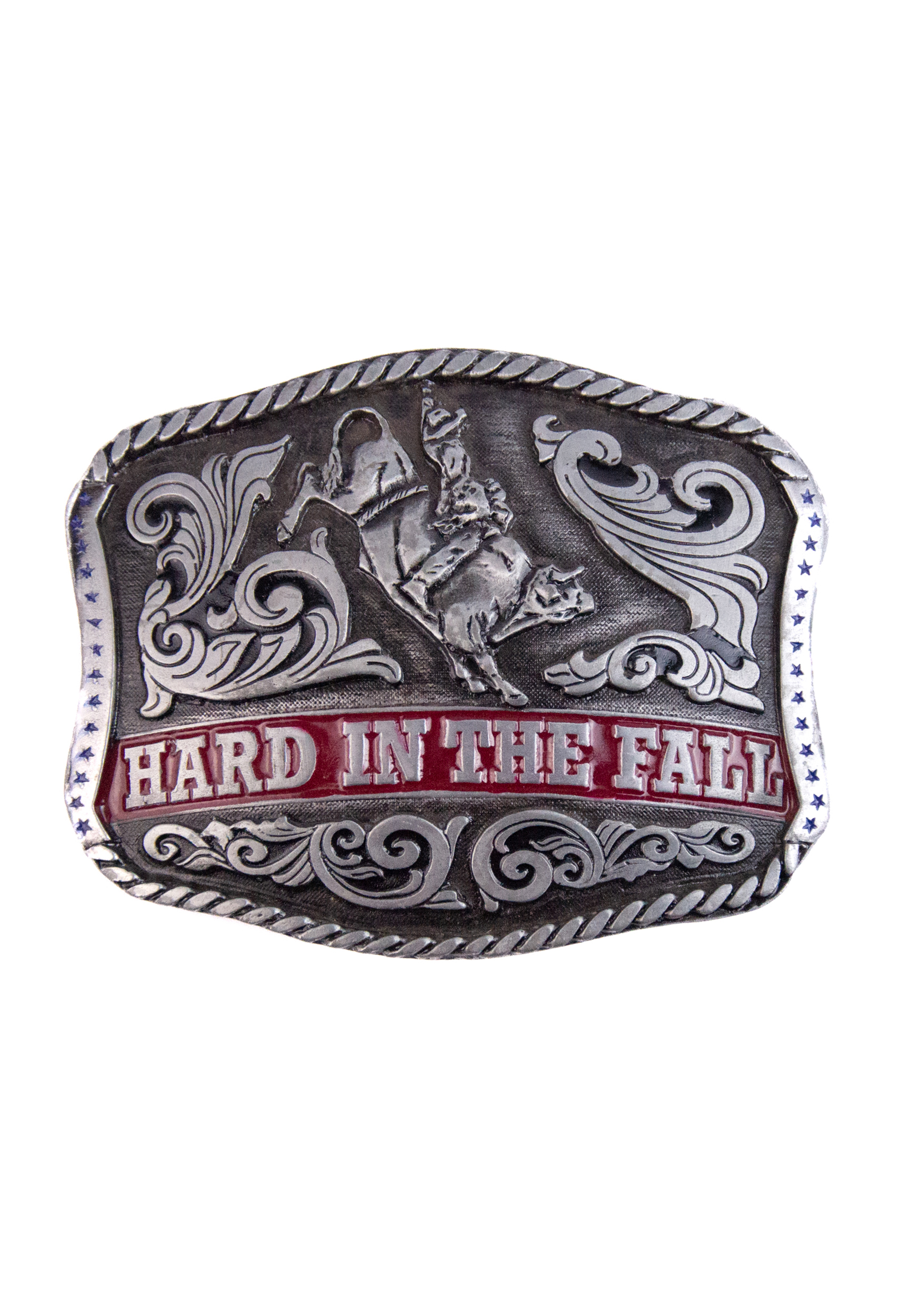 Com design marcante e cena de montaria em alto-relevo, a Fivela Hard in the Fall traduz a intensidade do rodeio. O acabamento envelhecido em prata com detalhe em vermelho destaca ainda mais a peça, trazendo personalidade.