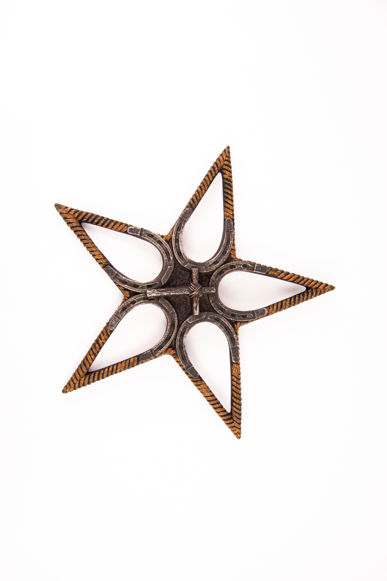 A Placa Decorativa em formato de estrela é a escolha ideal para quem busca personalidade e autenticidade na decoração. Com design robusto e acabamento rústico, a peça apresenta uma estrela vazada com detalhes que remetem ao estilo country e western, trazendo um toque artesanal e marcante ao ambiente.