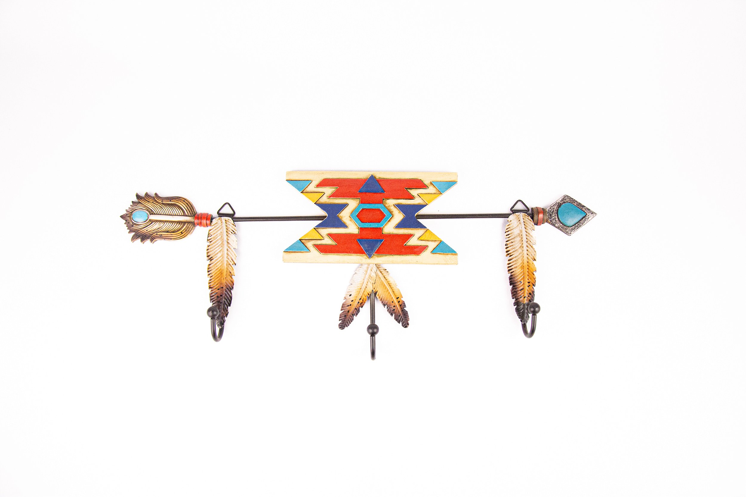 Gancho decorativo com 3 suportes, confeccionado em metal, com design em formato de flecha e detalhes inspirados na arte Navajo. Uma peça cheia de personalidade, perfeita para compor ambientes no estilo Western, Country ou Étnico. Ideal para pendurar chapéus, cintos, bolsas, chaves ou acessórios, unindo funcionalidade e decoração.