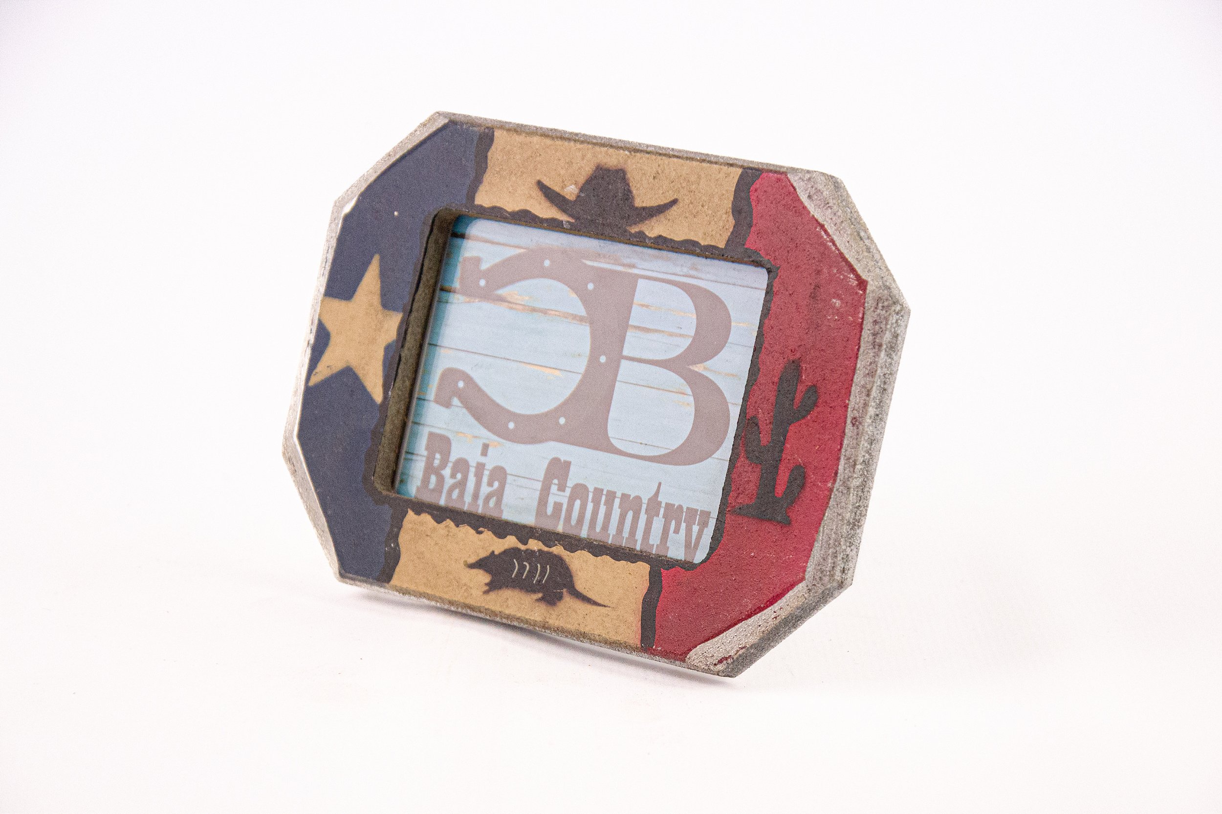 Porta-retrato decorativo pintado nas cores do Texas, com ilustrações temáticas que representam a essência Western. Uma peça cheia de personalidade, que une cor, cultura e estilo country em um único item. Ideal para valorizar fotos especiais e compor a decoração de ambientes rústicos, Western ou com inspiração texana, trazendo autenticidade e charme ao espaço.