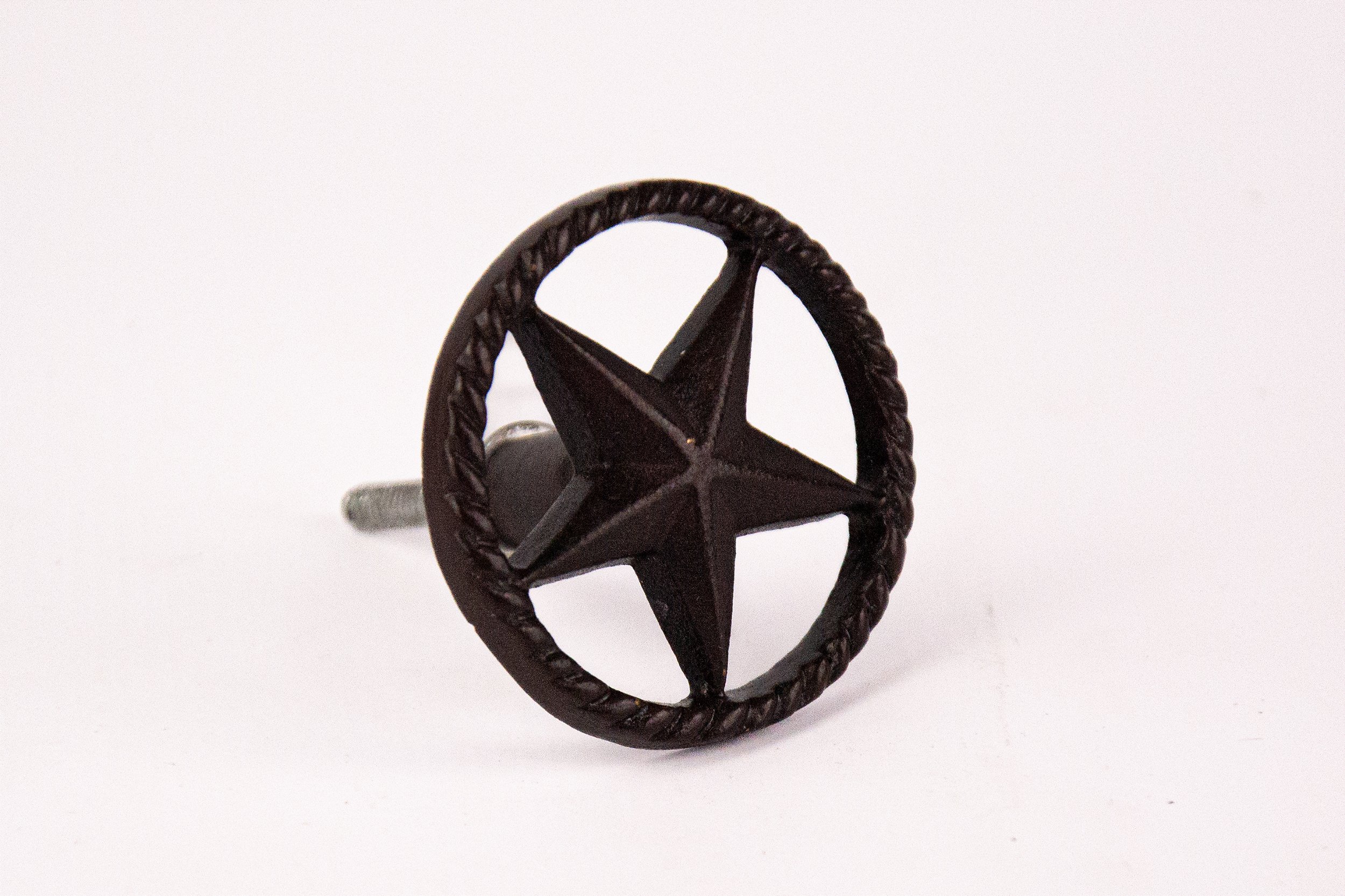 Puxador decorativo de formato redondo, com detalhe central em estrela , ideal para agregar estilo e personalidade a gavetas e móveis. Com design inspirado na estética country e western, é uma peça funcional que valoriza o ambiente com um toque rústico e atemporal, perfeita para composições clássicas e temáticas